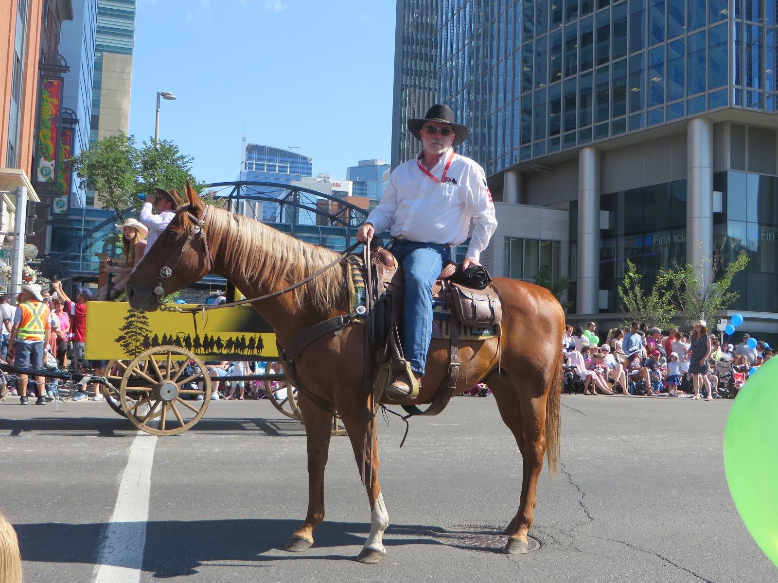 Les touristes l'attendaient de botte ferme, débarqués en gang depuis quelques jours. Remplissant à pleine capacité les hôtels, les terrasses des cafés et surtout des bars qui vibrent au son de la musique country..... ...Le party est en train de pogner ben dur à Calgary. Il a commencé par la parade que la foule entassée le long du trajet a suivie, ce matin, avec enthousiasme...
